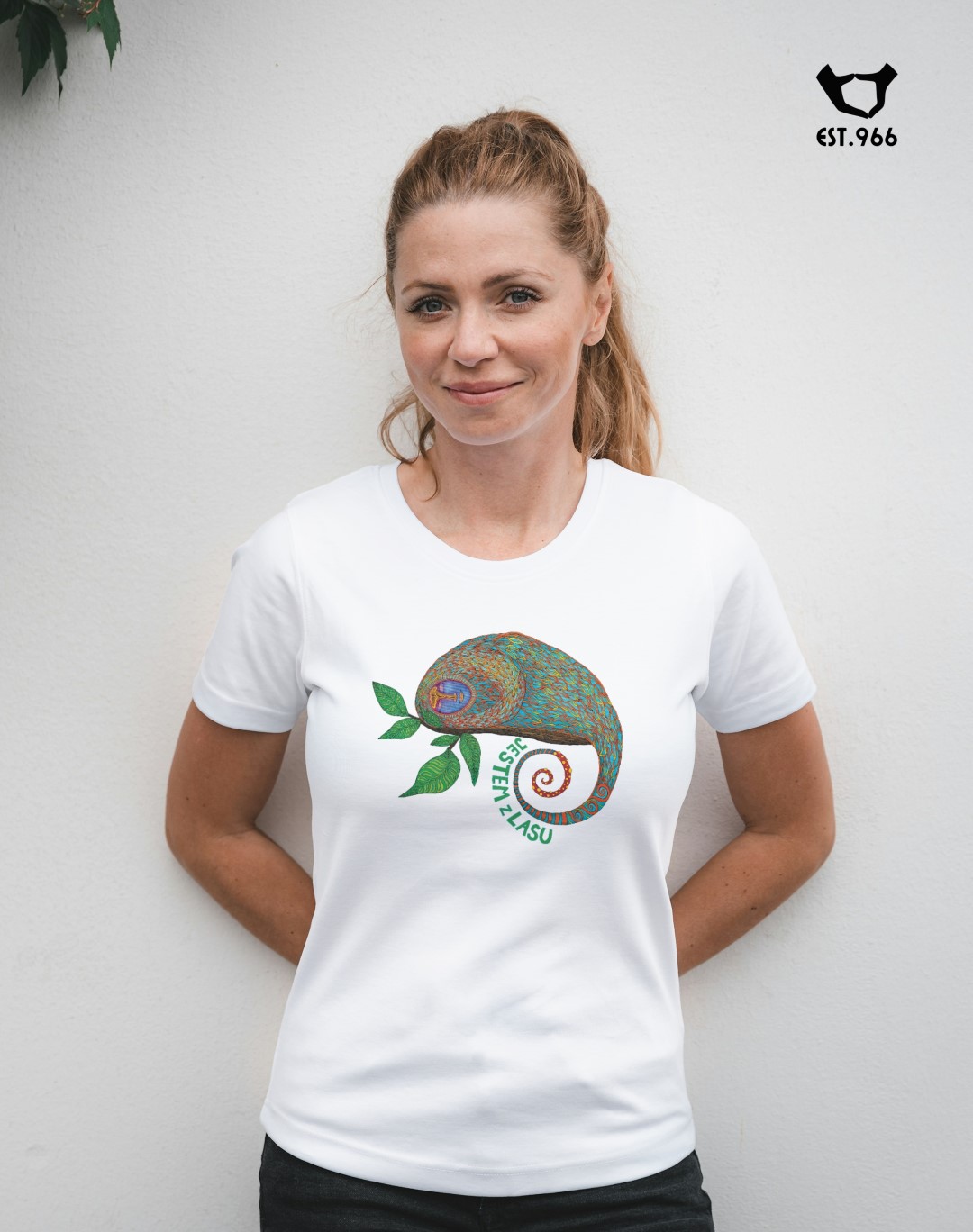 Oto kolejna fantastyczna koszulka z przepiękną, unikalną grafiką wspaniałej artystki, Luizy Poredy. Jeśli kiedyś pójdziecie do lasu i będziecie mieć trochę szczęścia, to może uda Wam się spotkać taką magiczną, nadrzewną istotę. A na razie musi Wam wystarczyć koszulka 🙂 Tylko nie zwlekajcie z tymi spacerami, bo tych dzikich, cichych, czarodziejskich leśnych ostępów mamy w Polsce coraz mniej…