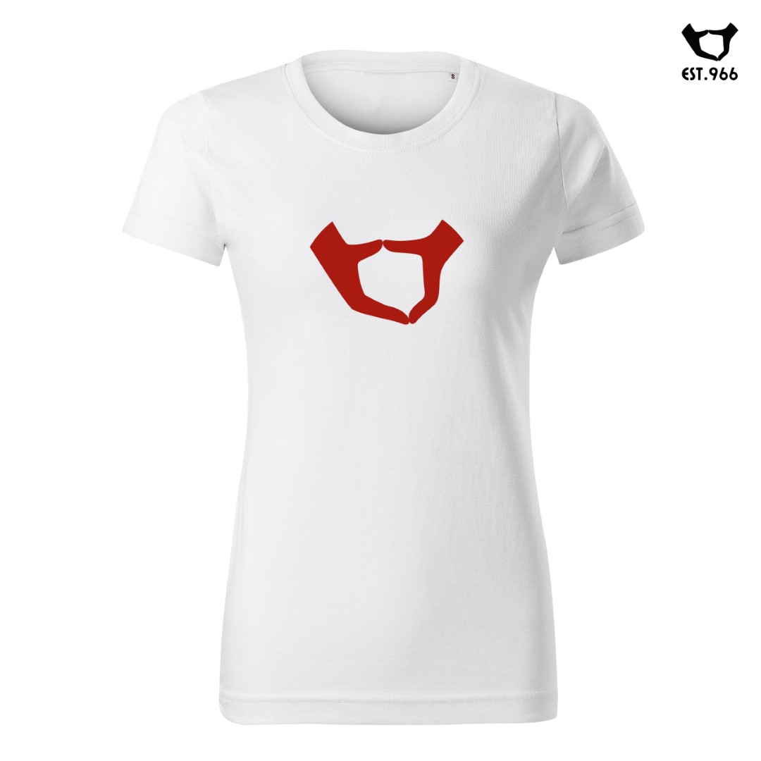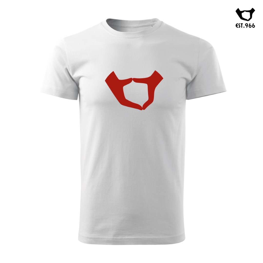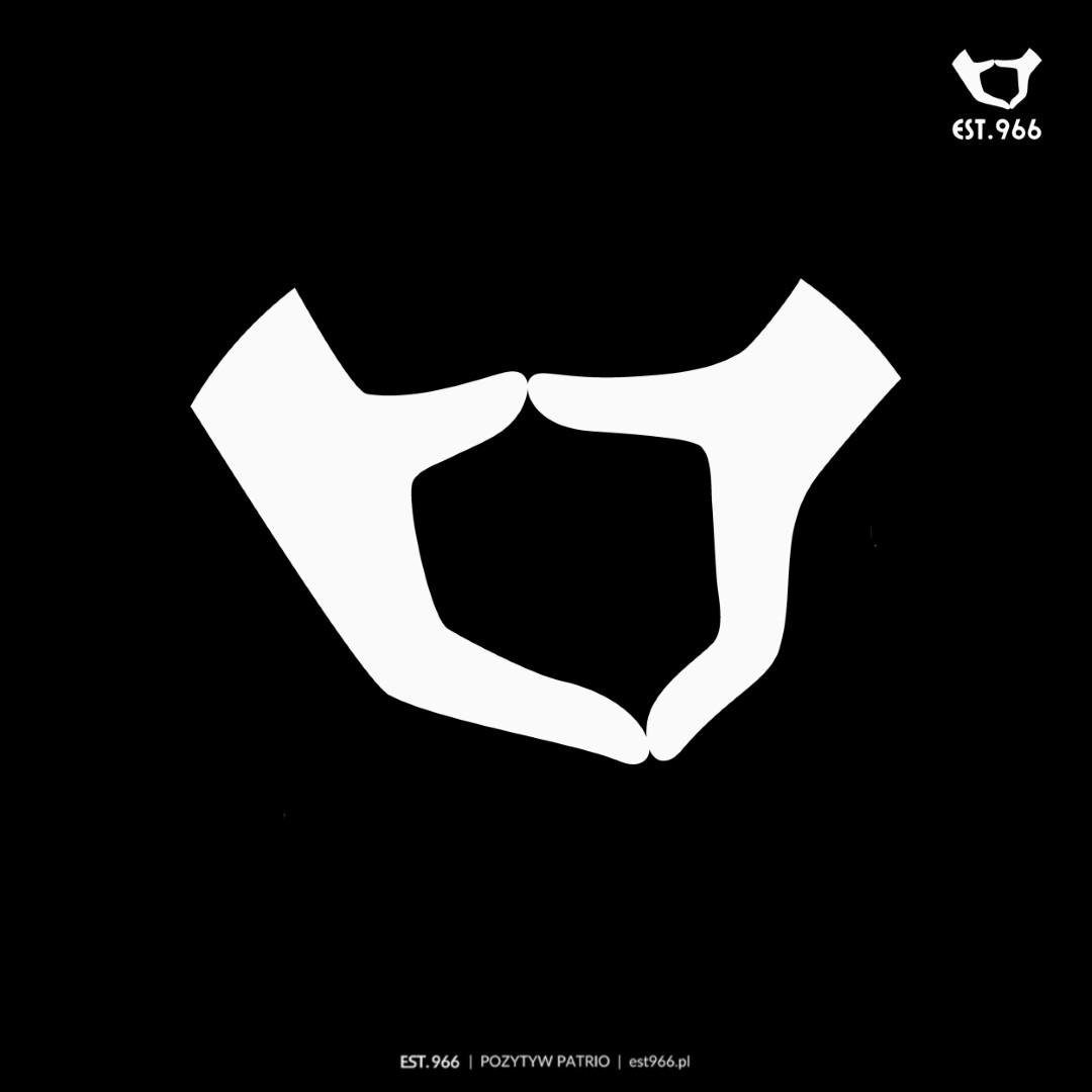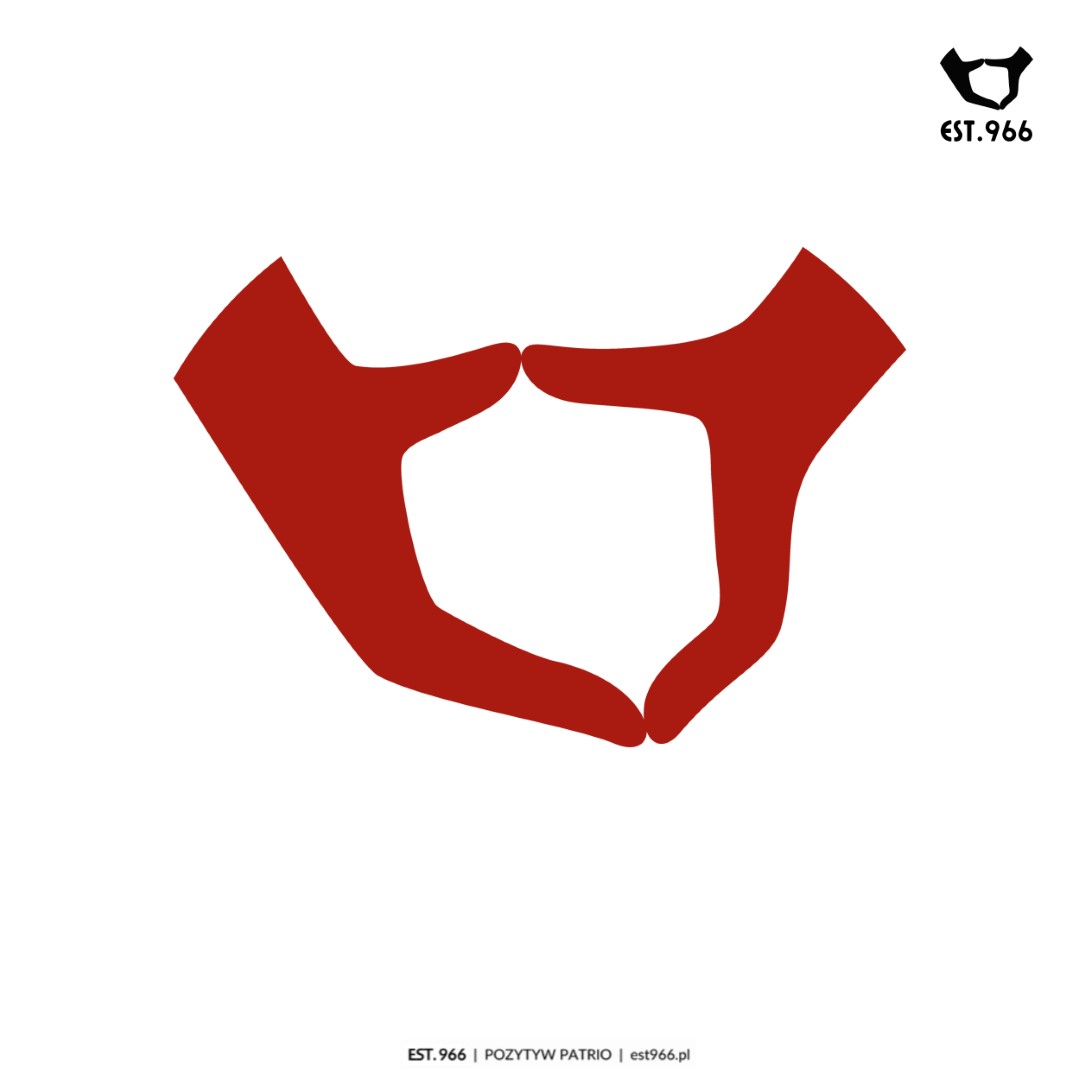 Ta koszulka jest bardzo prosta – oto nasze logo. Złączone dłonie tworzą kształt Polski. Oczywiście bardzo uproszczony kształt Polski, ale – mamy nadzieję – rozpoznawalny 🙂 To kwintesencja naszej marki, naszego „pozytyw patrio”. Polska w naszych rękach 🙂