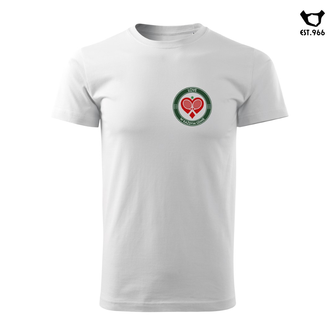 Dwie rakiety, piłka, kort i serce – niczego więcej nie trzeba. Ok, może jeszcze przydałby się partner do gry po drugiej stronie siatki 🙂 Zainspirowani logo turnieju wielkoszlemowego w Wimbledonie, przygotowaliśmy nasz własny projekt. Oto koszulka idealna nie tylko do gry w tenisa, ale również do manifestowania miłości do tego sportu. Zapraszamy!