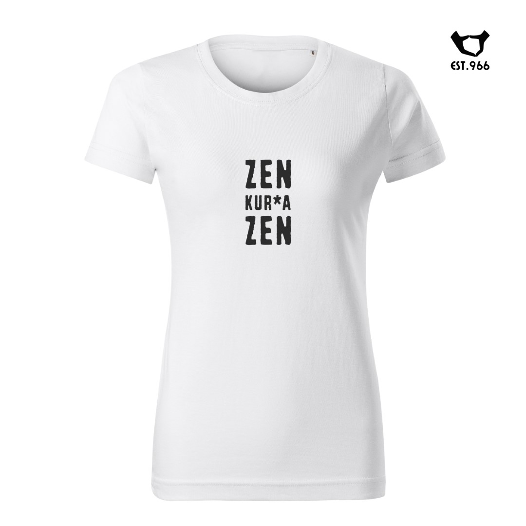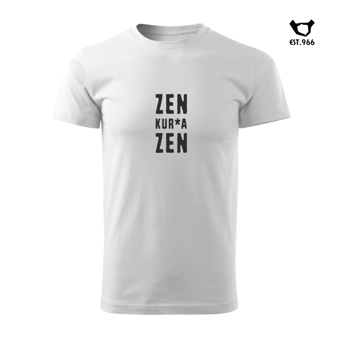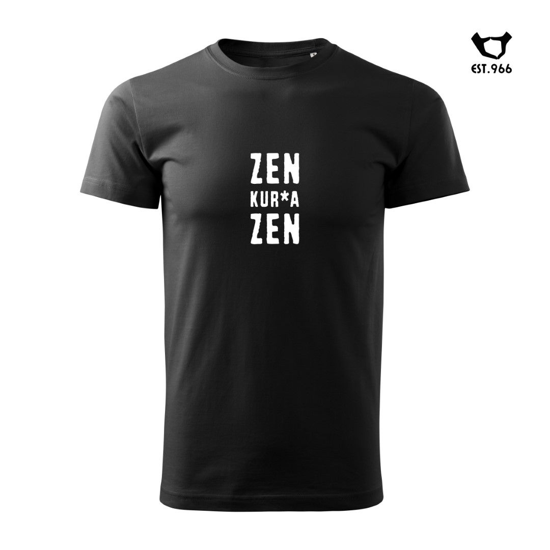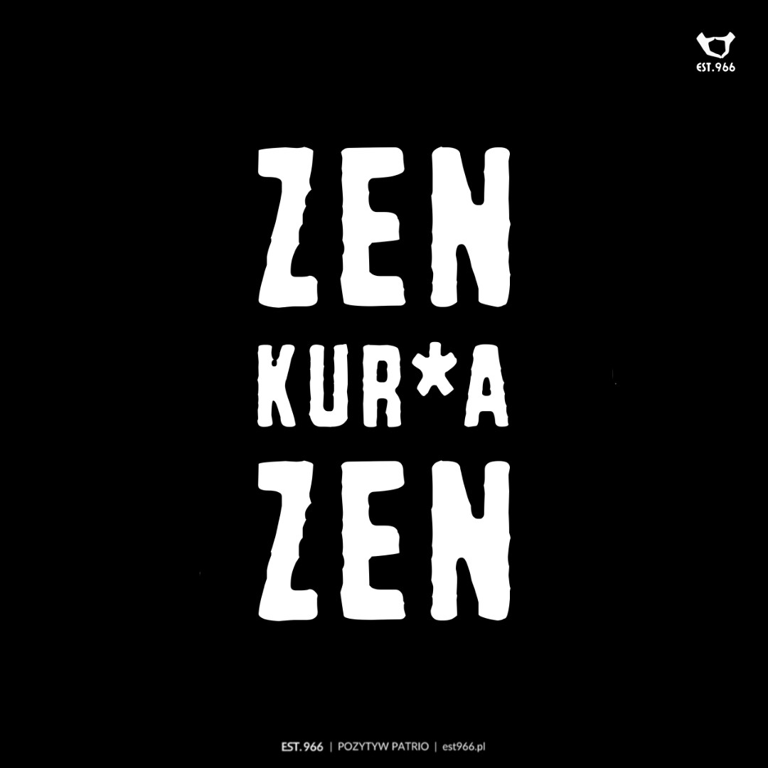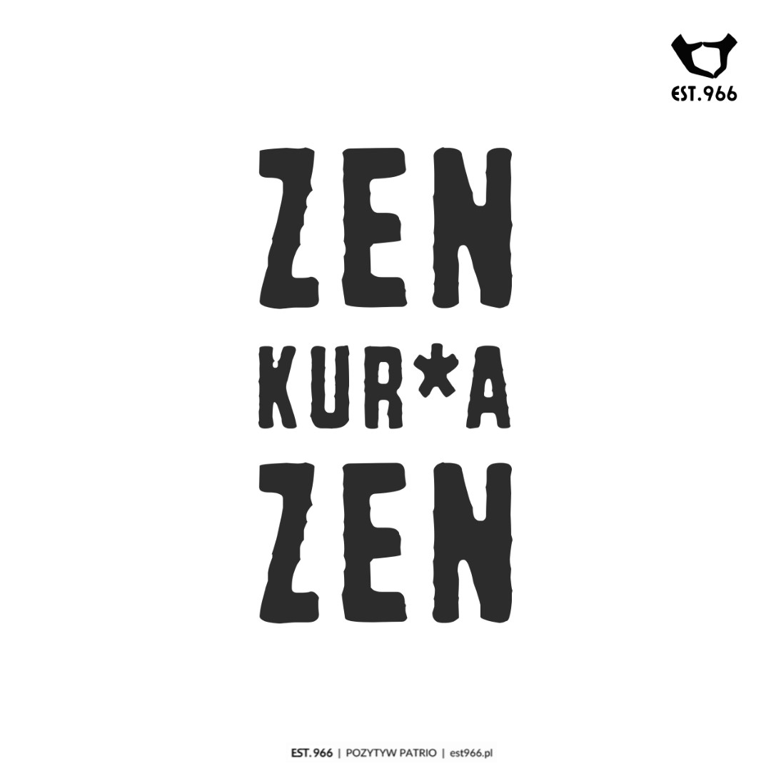Pomysł na tę koszulkę zrodził się podczas jazdy samochodem w korku. Kierowca, z reguły miotający w takich sytuacjach przekleństwa, postanowił tym razem nie dać się sprowokować nikomu i niczemu. Szło mu całkiem dobrze – do chwili, kiedy jakiś spóźniony pieszy, pędzący nie wiadomo gdzie, wyskoczył znienacka z chodnika niemal bezpośrednio pod koła. Ale kierowca zachował zimną krew, szepcząc pod nosem „zen, kurwa, zen”… 🙂